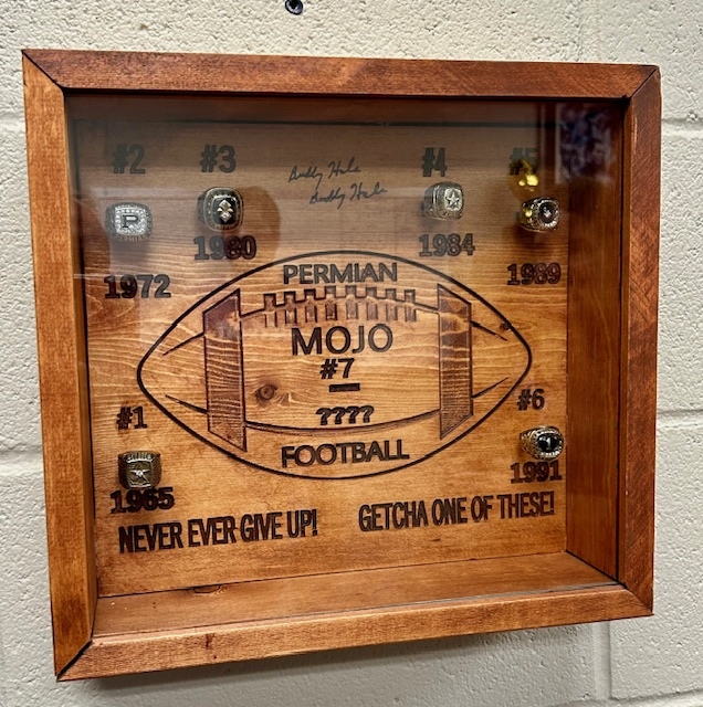 This showcase just off the PHS football locker room holds all of the school's state championship rings.